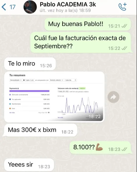 "Creía que iba a quedarme toda la vida estancada en un sueldo justo que me daba para pagar gastos. Estudié medicina por pasión pero también era importante mejorar mis ingresos. Nunca me imaginé poder facturar 20.000€ al mes y esto ha sido gracias a vosotros"